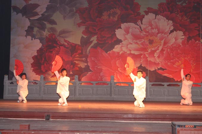 整台晚会节目丰富,精彩纷呈,抒发了教职工学习贯彻十七大精神、建设和谐校园的豪情壮志,表达了教职工对学院美好明天的憧憬。基础部分会以《中国功夫扇》表演拉开了晚会帷幕;教育学院分会带来的女声独唱《世纪春雨》催人奋进,深深感染了在场的观众;机关二分会的配乐诗朗诵《井冈情,延安颂》高亢激昂,回顾了艰苦战争岁月,将大家的思绪拉到了红色年代;外语商务学院分会的诗朗诵《青春中国》声情并茂、荡气回肠,将晚会推向高潮;机关一分会演唱的经典老歌《故乡的云》赢得了热烈的掌声,最后晚会在一曲真挚感人《天路》中圆满落下帷幕。