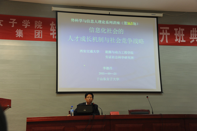 10月21日下午,势科学与信息人理论创始人、西安交通大学李德昌教授做客我校,在图书馆一楼报告厅作了题为“信息化社会的人才成长机制与社会竞争战略”的精彩报告。科研处、信息技术学院负责人与我校部分师生一起聆听了报告。