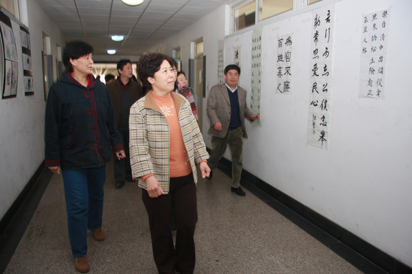 学校领导参观了文化艺术学院的“反腐倡廉——漫画、书法、短剧作品展”、教育学院的“以德立身 廉洁从学 ——反腐倡廉漫画作品展”、经济管理学院和教育学院的“党员之家”。领导们饶有兴趣地看了同学们创作的以反腐倡廉为主题的短剧、漫画、书法作品,并对这种具有教育性、思想性又通俗易懂的艺术表现形式给予了肯定。作品展既给大家一种形象直观、快畅淋漓的审美感受,又给大家一种针砭时弊、体味人生的理性思考,让人在会心一笑之余受到教育和启迪。最后,孙书记对各学院的党建和反腐倡廉工作提出了殷切的期望,要求继续深入落实廉政建设责任制,构建反腐倡廉责任体系;推进校园廉政文化建设,加大反腐倡廉宣传教育力度,创新教育形式,扎实有效地开展我校反腐倡廉教育活动。
