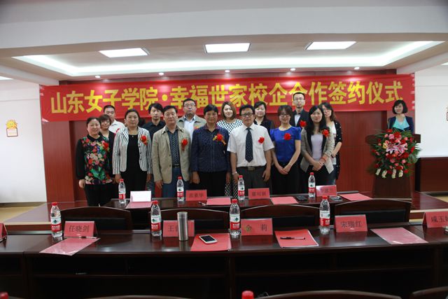仪式上,翟可新和范素华代表合作双方签署了《幸福世家·山东女子学院合办班协议》, 并为“山东女子学院实习就业双基地”揭牌。协议除规定了双方的合作原则、合作方式以及联合招生、共同培养等方面的事宜外,还明确了幸福世家对合办班学生的特惠政策,如,为优秀学生提供奖学金,为家庭困难学生提供助学金,实习期间为学生发放高于同期同水平实习工资10%的实习工资,学生在实习、就业期间享有正式员工的薪资福利待遇等等。这些政策不仅为实现人才培养与需求的零距离对接提供了保证,而且减轻了学生的家庭经济负担和就业压力,激发了学生学习的积极性和进取心,为我校老年服务与管理和社会工作专业的招生就业及可持续发展奠定了良好基础。