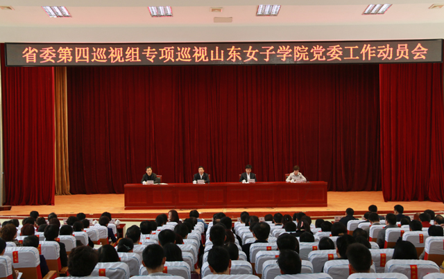 4月7日,省委第四巡视组专项巡视山东女子学院党委工作动员会召开。省委第四巡视组组长陈留泉、省委巡视工作领导小组办公室副主任刘庆常出席会议并讲话,山东女子学院党委书记郭翠芬主持会议并作表态发言,省委第四巡视组副组长林海波和巡视组全体成员参加会议。