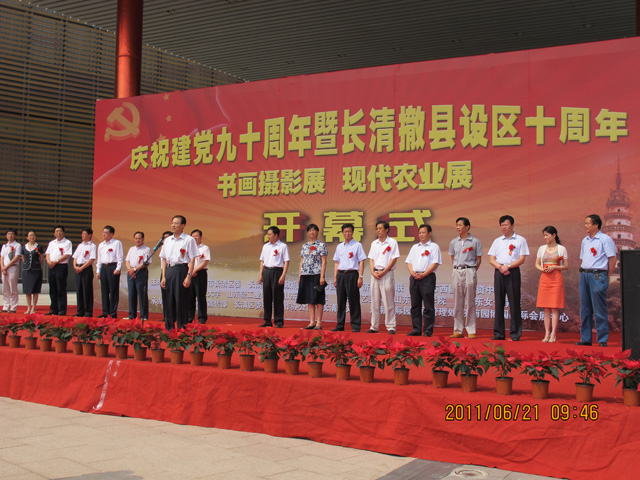 6月21日上午,长清区庆祝建党90周年暨撤县设区10周年书画摄影展、现代农业展开幕式在长清园博园会展中心举行。我校党委副书记、院长范素华在党委、院长办公室主任侯素美的陪同下出席开幕式,我校50余名学生参加了开幕式。