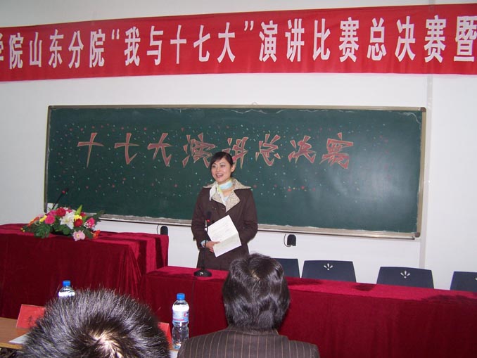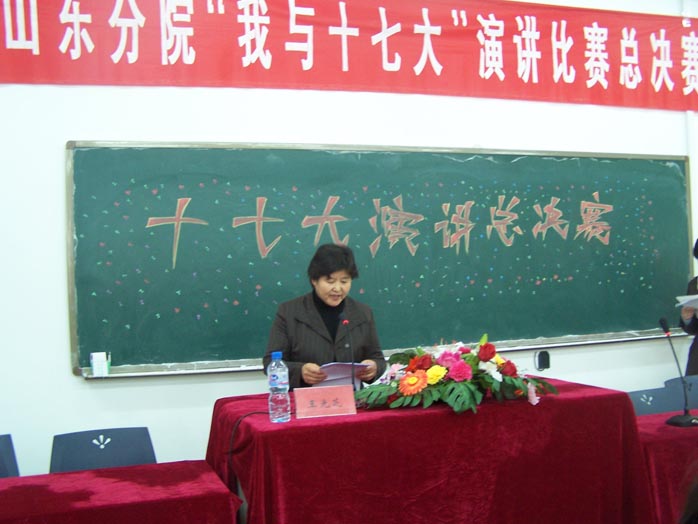 12月6日,“我与十七大”征文与演讲总决赛在合班楼309教室举行。院党委副书记兼纪委书记王光芝莅临比赛现场,并做了热情洋溢的讲话,对广大学生进一步学习和宣传十七大精神提出了具体要求。现场座无虚席,很多学生站在过道里观看比赛,为选手们加油鼓劲。