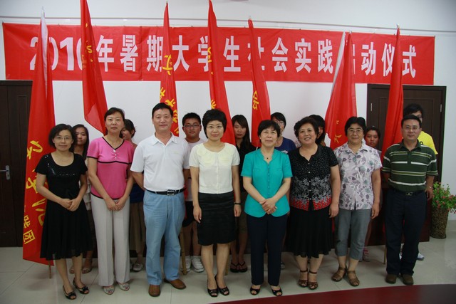 会上,学校领导为即将参加社会实践的团队代表授旗,当暑期社会实践团的志愿者代表从学校领导手中接过出征旗帜时,全场一片沸腾,这也象征着今年我校大学生暑期社会实践活动的号角已经吹响。