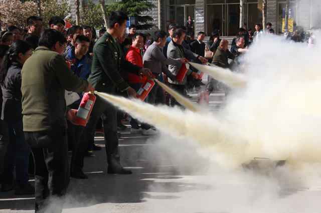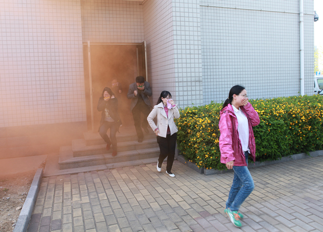 为进一步加强广大师生防灾减灾意识,提高应对突发事件及逃生自救能力, 4月16日,学校分别在办公楼、普教楼和7号学生公寓举行消防疏散逃生和灭火演练。本次活动邀请长清大学城消防中队黄忠亮队长和大学路派出所赵玉洁警官莅临指导。学校领导范素华、宿建沛、王淑霞、汪琦、贺兴利出席活动,在校教职员工及学生参加活动。