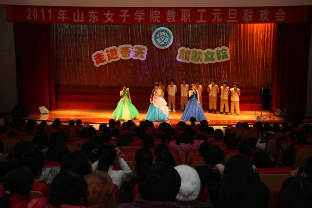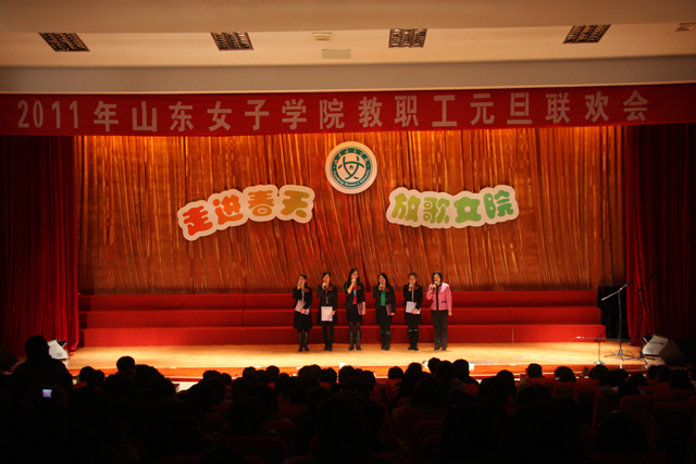 12月30日下午,我校在图书馆报告厅举行了“走进春天 放歌女院”暨2011教职工元旦联欢会,学校领导孙秀丽、范素华、宿建沛、王淑霞、宋兆静、赵胜村、贺兴利、林玉贵与全体教职工欢聚一堂,共同迎接新年的到来。