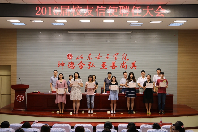 会上,贺兴利宣读了《2016届山东女子学院校友信使聘任决定》,党委、院长办公室相关负责人宣读了《山东女子学院校友信职责》,与会领导共同为2016届校友信使代表颁发了聘书。