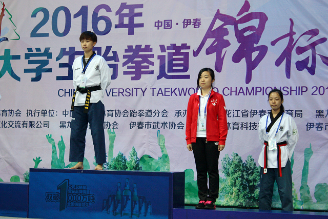近日,全国大学生跆拳道锦标赛在黑龙江伊春举行。本次比赛汇集了来自全国117所高校的1200名运动员,我校派出了代表队参加,这也是我校首次参加的最高水平的跆拳道比赛。经过5天的激烈角逐,来自信息技术学院的郭晓倩和会计学院的孙婷婷分别荣获全国大学生女子甲组品势第三名和第五名。同时,郭晓倩同学获得“优秀运动员”荣誉称号,基础部牛继超老师获得“优秀教练员”荣誉称号。这不仅是学校跆拳道队在国内大赛上的突破,也是学校体育工作全面发展的真实写照。