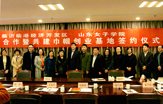 随后,王家兴和宿建沛代表合作双方签署了《山东女子学院与山东临沂市临港经济开发区管委会校地共建框架协议》,协议规定了双方的合作原则、合作内容、合作方式以及创新创业基地建设、创业培训、产学研用等方面的事宜。