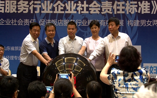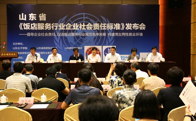 2016年6月22日上午,山东省《饭店服务业企业社会责任标准》(试行稿)由山东省旅游饭店协会、山东女子学院、联合国妇女署正式发布,这标志着山东省饭店服务业的企业社会责任建设工作进入了标准化、国际化发展的新阶段。此次发布会受到中国教育报、中国旅游报、齐鲁晚报、都市女报、大众报业集团经济导报、山东电视台、新华网、凤凰网、齐鲁网、大众网、祝你幸福杂志社等众多媒体的关注。