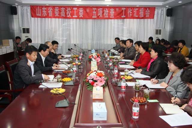 10月28日,省委高校工委副书记(正厅级)齐秀生、省委高校工委办公室调研员李安敏、省委高校工委安保处处长贾宝赞、省委高校工委办公室副主任孔宪坤莅临我校,为我校“山东省高校平安校园建设研究基地”揭牌,并对我校落实《干部选拔任用条例》等五项工作情况进行检查。
