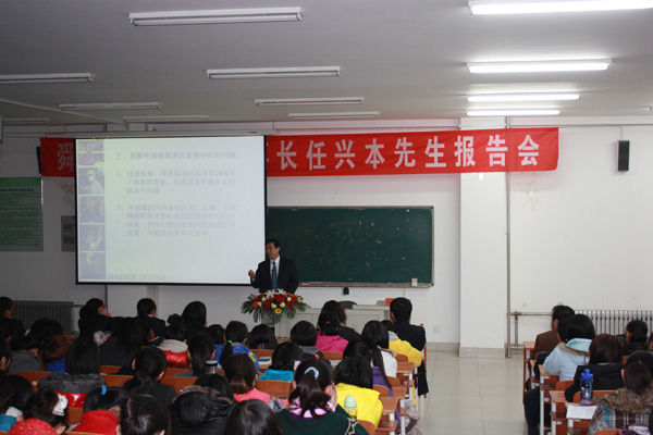 任兴本先生从“异化”的哲学立场出发,从我们所了解到的酒店发展历史、目前中国星级酒店普遍存在的问题及解决对策、新形势下人才培养方式变革等多维度,梳理了中国星级酒店历史发展脉络,指出了当前中国星级酒店要调结构、转方式来适应中国市场要求的发展新思路,着力阐述了纵观人才市场全局,差异化培养人才的人才培养理念。报告深入浅出,通俗易懂,使与会的200余名师生深受教育与启发,尤其为即将进行毕业实习和教学顶岗实习的学生指明了方向,受到学生的广泛好评。