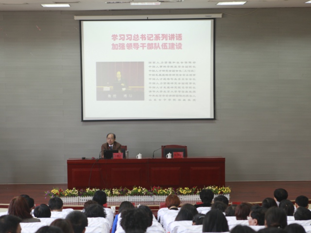 4月9日下午,我校新任处级干部培训班在图书馆一楼报告厅开班。学校领导、科级以上干部参加了本次开班仪式。