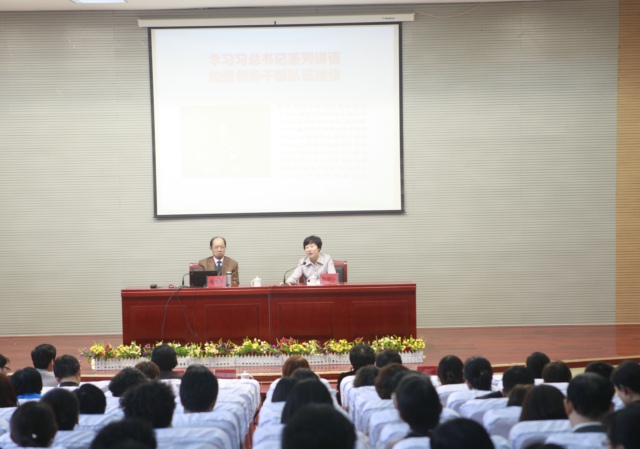 随后,我校客座教授、国家人力资源和社会保障部中国人事科学研究院原常务副院长、现任中国人才研究会副会长、博士生导师吴德贵教授作了题为“学习习近平总书记系列讲话、加强领导干部队伍建设”的专题报告。吴教授就十八大以来习近平总书记的一系列讲话精神进行了解读,并结合当前干部管理中存在的一些问题进行了分析,着重对领导干部自我管理中健康管理、人格管理、心态管理、情绪管理、角色管理、时间管理、工作管理、学习管理、形象管理等九项管理内容做了详细阐释。报告理论精深、内容详实,语言生动、深入浅出,参会领导干部受益匪浅。