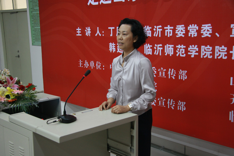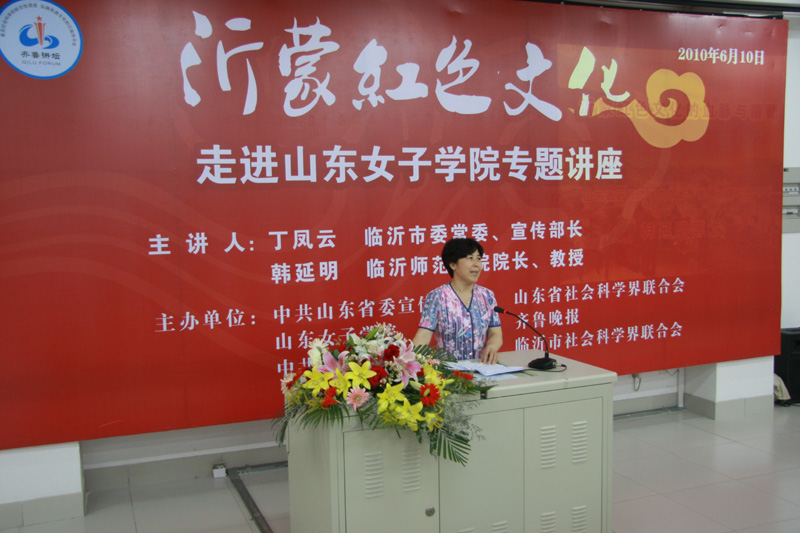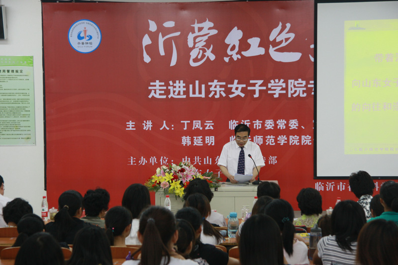 临沂师范学院院长韩延明作了题为《沂蒙红色文化的血脉与精髓》的报告,他用丰富的历史资料进一步解读了沂蒙红色文化所蕴含的“大爱”、“忠诚”、“正义”和“实干”品质。临沂市委常委、宣传部长丁凤云在报告中,阐述了“沂蒙红色文化”的核心价值体系,并从“打造了一个闻名全国的政治品牌”、“打造了一个影响深远的红色文化品牌”和“打造了一个充满活力的红色文化产业品牌”等三个方面,生动形象地展现了临沂市在加快沂蒙红色文化建设所取得的巨大成就。报告会结束后,学生和老师们观看了荣获全国“五个一工程奖”、“电影华表奖”优秀故事片奖电影《沂蒙六姐妹》。