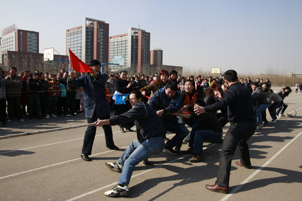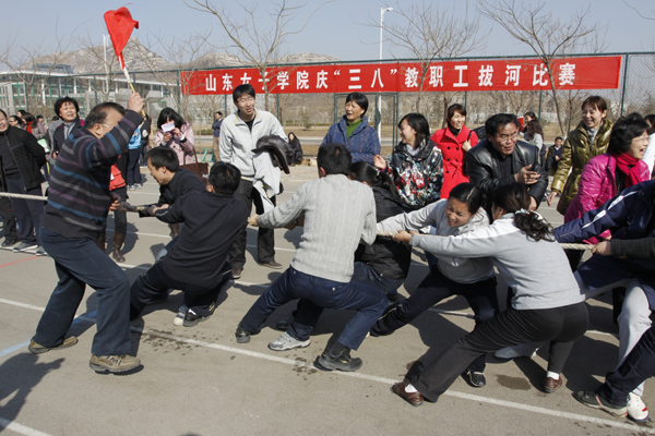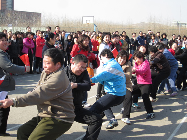 在庆祝“三八”妇女节101周年之际,为了增强我校教职工内部的凝聚力和向心力,展现我校教职工积极向上的精神面貌,3月10日下午,由校工会、妇委会主办,基础部承办的教职工拔河比赛在学校田径场举行。孙秀丽、范素华、宿建沛、宋兆静、赵胜村、汪琦、贺兴利等学校领导以及12支教职工代表队参加了此次比赛。