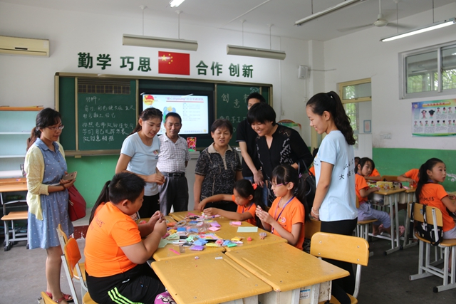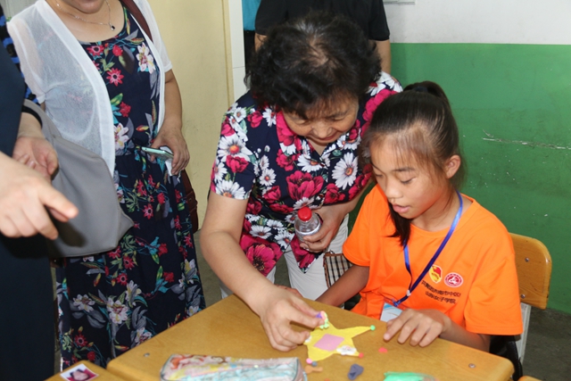 座谈会结束后,各位领导在暖心向“YOUNG”志愿服务队志愿者的带领下参观了催马小学夏令营课堂,小学生们用饱满的热情积极展示了他们的课堂成果,志愿者们也向领导们介绍课堂内容和意义。校领导对志愿者们表示亲切的慰问,鼓励他们继续努力,不断提升社会责任感。