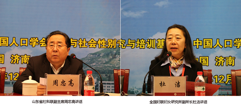 开幕式上,郭翠芬在致辞中首先代表全校师生对莅临会议的领导、专家表示诚挚的欢迎,向一直关心支持学校建设发展的省社科联、省教育厅以及省妇联表示衷心的感谢。她指出,全面二孩政策的实施,对妇女发展和妇女权益维护所带来的影响受到社会各界和妇女理论界、妇女组织的高度关注,研讨会有幸邀请到人口学、社会学等方面的著名专家学者,聚焦全面二孩生育政策与妇女儿童发展主题展开研讨,必将为学界与业界带来有关全面二孩政策研究的新信息,新成果。郭翠芬强调,新形势下学校将认真贯彻落实习近平总书记的重要讲话精神,努力承担起妇女研究推进性别平等的责任,加强与各级妇联、高校和社科研究机构的联系与合作,为中国特色妇女研究事业作出积极贡献。周忠高在讲话中指出,山东社科论坛是山东省多层次、常规性、社会化的大型学术平台,本次研讨会探讨全面二孩政策实施过程中保障女性生育权利、劳动权益等问题,不仅关乎到女性生存与发展,也关乎到社会的稳定与发展,希望到会的专家学者能够发挥聪明才智,提出更多有深度、有价值的观点,为完善相关政策和制度建言献策、提供智力支持。杜洁在讲话中指出,全面二孩政策真正落地,既面临着政策配套问题,也有很多其他新产生的问题,需要进行深入的研究,山东女子学院作为2013年与全国妇联、中国妇女研究会联合建立的妇女/性别研究与培训基地,选择这一具有前瞻性的议题作为本次研讨会的主题,可以为学校的学科建设带来新的增长点。