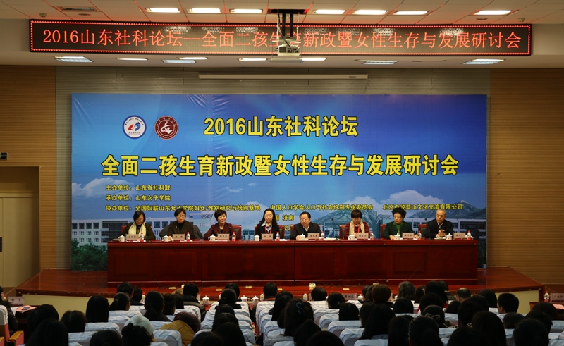 12月17日,“2016山东社科论坛——全面二孩生育新政暨女性生存与发展研讨会”在我校隆重召开。本次研讨会的主题是探讨全面二孩生育新政背景下女性生存与发展面临的压力与挑战,为完善全面二孩政策的配套措施、促进两性和谐发展建言献策。学校党委书记郭翠芬出席开幕式并致辞,山东省社科联副主席周忠高,全国妇联妇女研究所副所长杜洁研究员出席开幕式并讲话。学校副校长王淑霞主持开幕式。来自全国妇联妇女研究所、北京大学、南京大学、中国人民大学、中华女子学院、河北大学、南京师范大学金陵女子学院、山东省社科院、济南大学、山东交通学院等高校及科研院所的专家学者及我校师生代表共220余人参加了研讨会。