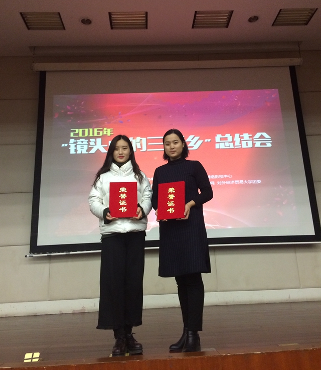 总结大会为获得2016年“镜头中的三下乡”荣誉的高校、团队以及个人进行了颁奖,团中央网络影视中心党委副书记、常务副主任、中国青年网总裁郝向宏,团中央网络影视中心相关领导和来自全国各地高校的师生代表参加了此次总结大会。据悉,2016年共有来自全国各地564所高校的3868支团队参与了 “镜头中的三下乡”活动。 女院学子以“建功十三五,镜头传真情”为主题,用镜头纪录民生民情,坚持用青春梦激扬中国梦,在社会实践活动中践行社会主义核心价值观,传递出女院学子的青春正能量。(董雪)