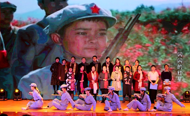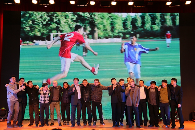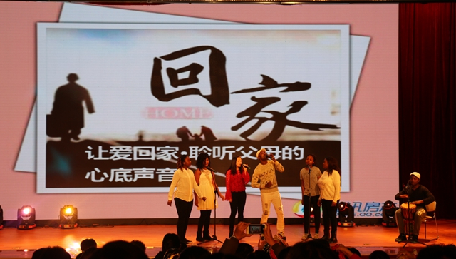 演出结束后,学校领导上台亲切慰问演职人员并合影留念。