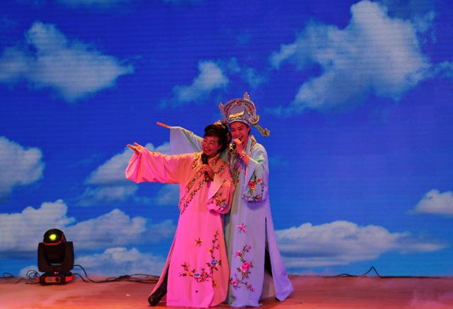 由学校党委书记郭翠芬、校长范素华、党委副书记宿建沛领演,院办、人事处、编辑部、图书馆、继续教育学院、绿化中心负责人参加的戏曲联唱,博得观众阵阵掌声,将现场气氛推向高潮。联欢活动历时近两个小时,最后在独唱《阳光路上》的优美旋律中圆满落幕。