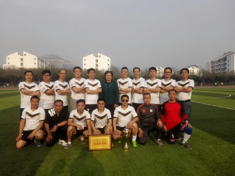 4月1 -15日,由山东高速地产集团、绿城管理集团承办的 “山东高速·绿城蘭园”杯驻济高校教职工足球赛在齐鲁工业大学举行。本次比赛共有驻济高校的8支球队参加,学校教工男子足球队应邀参加了比赛。在小组赛中,学校教工男子足球队表现了不俗的实力,以两胜一负的成绩晋级排名赛。随后,在季军争夺战中,学校教工男子足球队发挥更加出色,以3:1力克济南大学足球队,最终获得第三名的好成绩,并在微信投票中获得总票数第一名,荣获“最佳人气奖”。