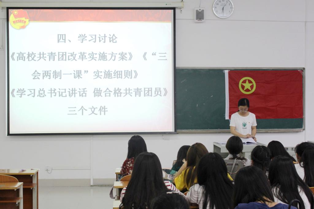 习近平总书记在考察中国政法大学时寄语广大青年,“当今中国最鲜明的时代主题,就是实现‘两个一百年’奋斗目标、实现中华民族伟大复兴的中国梦。当代青年要树立与这个时代主题同心同向的理想信念,勇于担当这个时代赋予的历史责任,励志勤学、刻苦磨炼,在激情奋斗中绽放青春光芒、健康成长进步。”同学们纷纷表示,重温入团誓词,再次记起当年加入共青团的初衷。在今后的学习工作生活中,当不忘初心,珍惜青春、奋发有为,为实现百年女大梦、伟大中国梦贡献青春力量。(郭晓东)