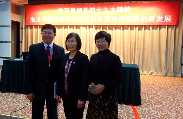 11月28-29日,2017年中国妇女研究会年会暨“中国特色社会主义妇女理论与实践的创新和发展”研讨会在京召开。研讨会深入学习贯彻党的十九大精神,以习近平新时代中国特色社会主义思想为指导,研讨新时代妇女发展的重大理论与实践问题,推动新时代中国特色社会主义妇女理论创新发展。全国妇联主席、中国妇女研究会会长沈跃跃出席会议。学校党委书记郭翠芬受邀并带队参加了本次会议。