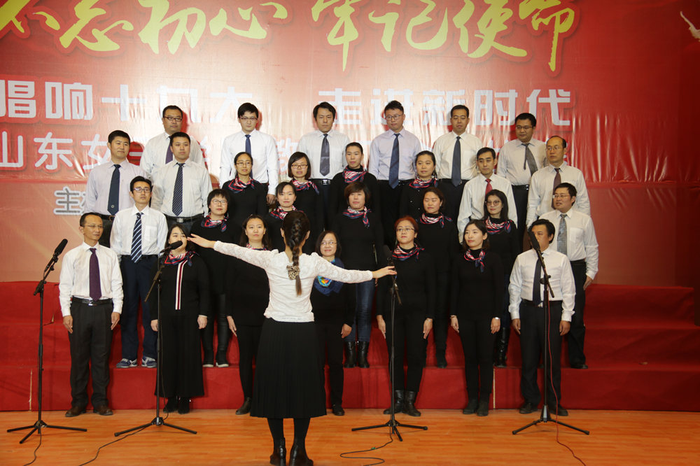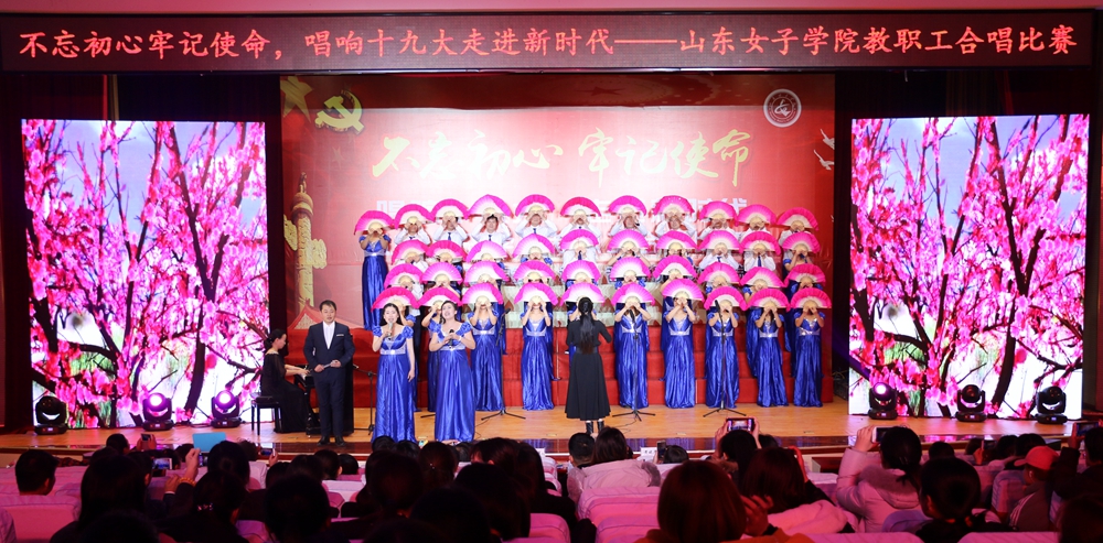 飞扬的歌声,回望激情的岁月;熟悉的旋律,展望美好的未来。12月28日下午,学校在图书馆二楼报告厅举行“不忘初心牢记使命,唱响十九大走进新时代”——山东女子学院教职工大合唱比赛。由15个分会组成的15个合唱队共计600余名教职工参加了比赛。学校领导郭翠芬、王淑霞、黄晓彦、侯素美参加了各自分会的演唱,并为获奖队颁奖。