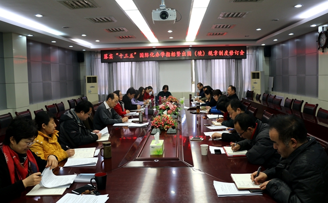 3月16日上午,学校在办公楼第三会议室举行“落实‘十三五’国际化办学指标暨学校出国(境)规章制度修订会”。学校党委副书记王淑霞主持会议并讲话。组织部、学生工作处、人事处、教务处、科研处、财务处、各二级院部相关负责人及国际交流合作处全体工作人员参加会议。