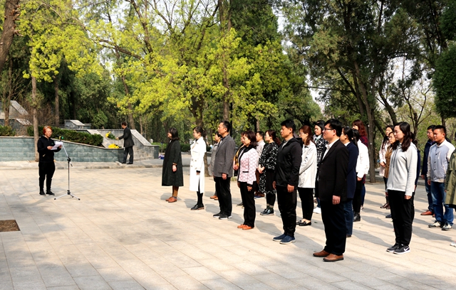 机关党总支书记赵长军介绍了陵园的基本情况,讲述了革命烈士的感人事迹,讲述了484位先烈为革命事业不屈不挠、英勇献身的革命精神,使党员及教职工们的心灵受到一次强烈震撼与洗礼。大家在铭记革命先烈光荣事迹的同时,更加懂得了作为一名合格党员应当肩负的历史重任,进一步坚定了实现中华民族伟大复兴的决心和信心。