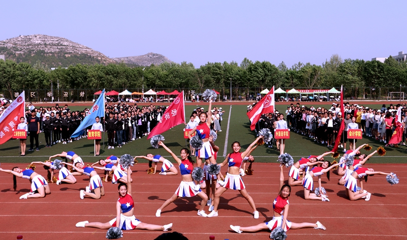 盛国军在致辞中指出,近年来,学校高度重视体育教学工作,积极推进体育教学改革,针对不同年级的同学开展不同的体育课程,基本建立起了基础、选项和选修三个层次的体育课程体系,为每一位同学发挥体育特长,掌握适合自己的健身技能奠定了良好基础。一直以来,学校大力倡导全民健身,积极开展阳光体育运动,群众性体育活动不断深入,尤其是通过组建特色运动队积极训练,既起到以点带面、点面结合、相互促进的作用,又使得同学们在各级各类比赛中屡获佳绩。2017年,学校健美操队在第六届全国全民健身操舞大赛全国总决赛中荣获特等奖3项、一等奖3项,获得“团队最佳创编奖”“优秀裁判员”“优秀教练员”等荣誉称号;学校健身气功队参加山东省高校健身气功比赛,获得大舞项目一等奖第一名,八段锦项目二等奖的好成绩。这些骄人成绩充分展示了我校师生的良好体质和精神风貌。盛国军强调,运动会是展示健与美的舞台,是和平与友谊的象征,希望全体参赛运动员,发扬“更高、更快、更强”的精神,充分发挥,赛出水平;同时也要服从大会安排,尊重裁判,尊重对手,赛出风格;希望全体裁判员,客观公正,严守规程,公正裁决。他指出,运动会是短暂的,但运动是永恒的,希望广大师生员工在运动会之后,常来运动场,把健身当做一种生活方式,用健康的身体支撑聪明的大脑,在新时代的伟大征程中,为追求美好生活打下良好基础。