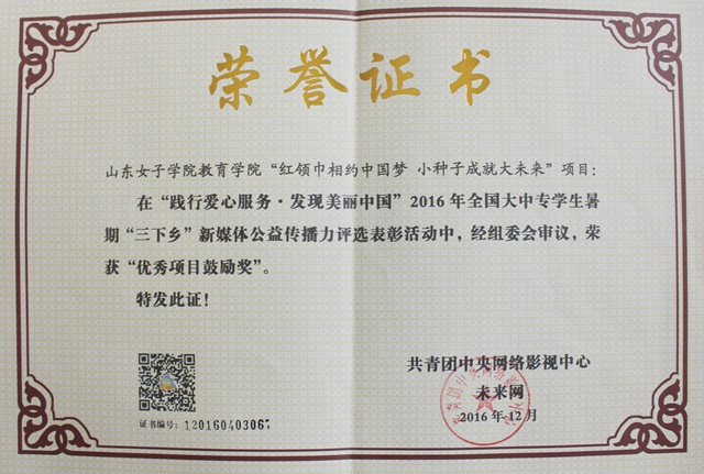 参加支教的两支团队相继获评团中央“全国百强实践团队”、“镜头中的三下乡”好团队称号,“千校千项”之“最具影响好项目”、团中央未来网“优秀团队鼓励奖”、“优秀项目鼓励奖”、省社会实践优秀团队等多项奖项。富有实效的志愿服务活动在当地引起了良好社会反响,活动得到当地人民群众的大力支持和赞誉,团中央网站、人民网、大众网、舜网、中国山东网、鲁网等数十家家媒体给予报道。