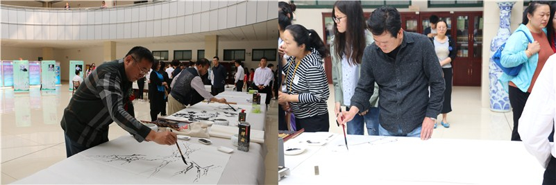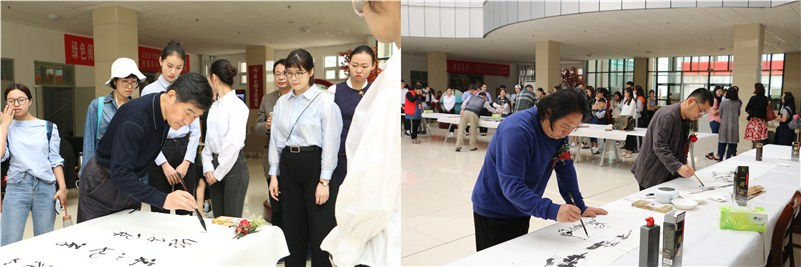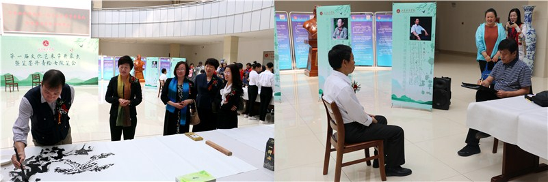 郭翠芬宣布学校第一届文化艺术节开幕。郭翠芬和盛国军共同揭展由学校艺术设计学院副教授赵崇立书写的书法长卷。文化艺术节正式拉开序幕。接下来,艺术家们挥毫泼墨,尽情展示中华优秀传统文化的魅力,精湛的技艺赢得广大师生的赞誉。