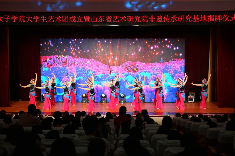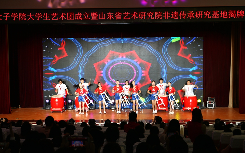 仪式结束后,与会人员一同欣赏了山东省非遗项目展演及学校大学生艺术团表演的文艺节目。由非遗专家表演的山东快书、山东琴书、吕剧等淋漓尽致地展现了中华优秀传统文化的独特魅力,由大学生表演的鼓乐、表演唱、舞蹈和由青年教师带来的古琴演奏和歌曲充分展现了新时代广大师生进取创新、昂扬向上的精神风貌。大学生艺术团成立暨省艺术研究院非遗传承研究基地的建立将进一步发挥以文化人的功能,助力学校人才培养,服务地方经济文化发展,繁荣齐鲁大地的文化艺术事业。