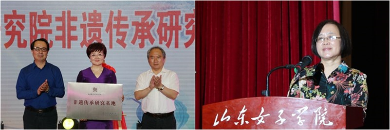 刘敏 张积强为“山东省艺术研究院非遗传承研究基”揭牌并授牌 王淑霞主持仪式