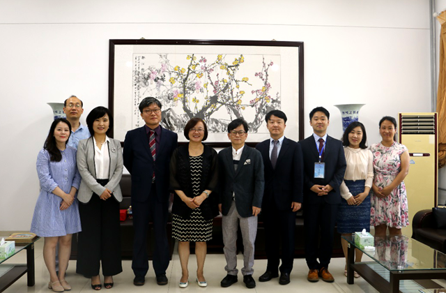 王淑霞代表学校对客人的到访表示欢迎。她着重从学校的发展历史与未来愿景介绍了学校基本情况,希望双方逐步在学科建设、学生联合培养、教师研修等方面开展合作。并高度赞赏了学校与韩信大学的成功合作,希望能够开辟更为广阔、更为深入的合作局面。