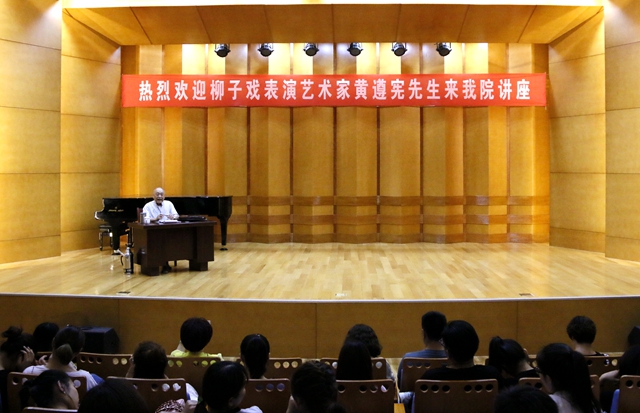 6月14日,著名柳子戏表演艺术家黄遵宪应邀到我校进行了柳子戏讲座,并受聘为我校客座教授。学校纪委书记黄晓彦为黄遵宪先生颁发了聘书,双方在办公楼接待室进行了座谈。随后,黄遵宪先生在学校音乐厅进行了讲座,音乐学院全体师生参加了本次活动。