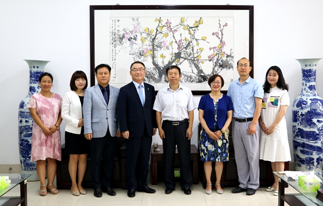 7月5日上午,韩国京畿大学校长金仁圭率团来学校交流访问。学校校长盛国军、党委副书记王淑霞会见了韩国客人。