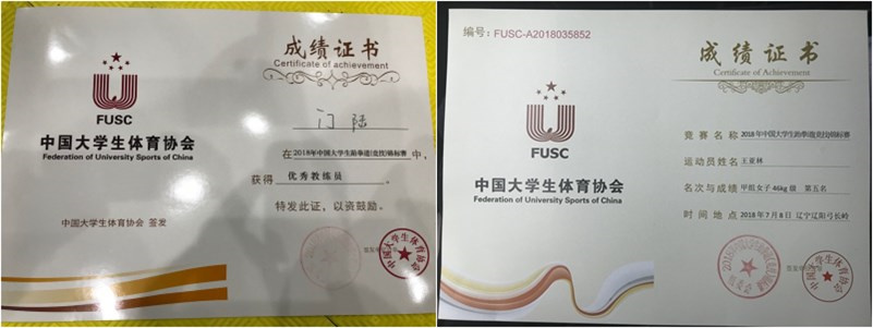 我校来自社会与法学院的王亚林同学在比赛中不畏强敌,奋勇拼搏,经过多轮苦战,最终荣获全国大学生女子甲组46KG第五名的好成绩,同时我校代表队在赛会期间精神焕发、表现优异,被评为“精神文明运动队”,门陆老师获得“优秀教练员”称号。