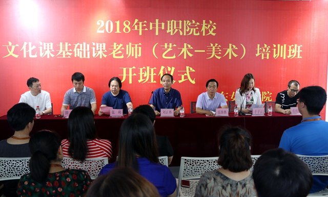 7月16日上午,学校隆重举行2018年中职院校文化基础课教师(美术)国培班开班仪式。副校长刘正林、山东省高等学校师资培训中心副主任张继林出席开班仪式,人事处、艺术设计学院、继续教育学院和后勤管理处负责人及全体培训学员参加开班仪式。