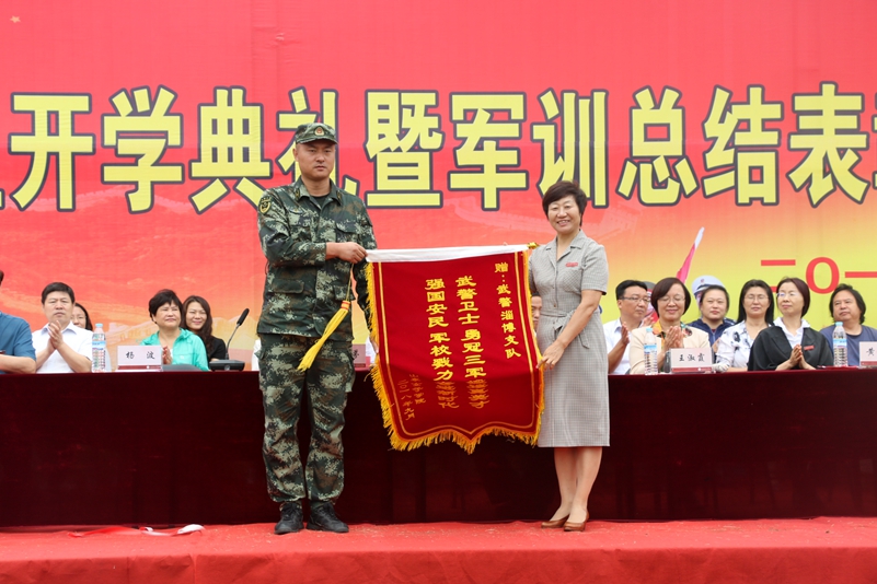学校副校长侯素美宣读表彰决定,共10个先进连队、10名优秀教官、103个优秀宿舍、113名先进个人受到表彰。随后,承训部队——武警淄博支队大队长杨波同志、教师代表、高年级学生代表、新生代表分别在大会上发言。