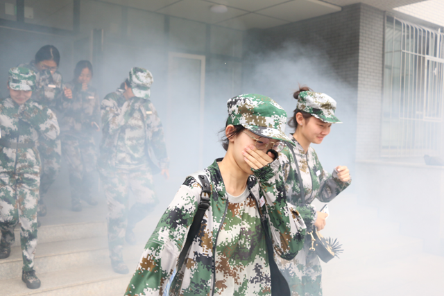 演习场景设计为宿舍楼内突发火灾,楼内管理人员在发现火灾险情后,第一时间到起火现场查看并做好初步的应急处置。随后通知保安迅速拨打火警电话119,消防人员赶到现场,组织现场工作人员及时疏散新生等工作,采取专业、科学、立体的救援行动,协同配合,发挥装备的最大效能,使“火势”得到了有效控制,并最终得以成功“扑灭”。