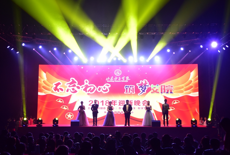 9月20日晚,由学校团委主办,各学院团总支、校学生会承办,网络信息中心协办的“不忘初心,筑梦同行”——2018年迎新晚会在田径场隆重举行。学校领导郭翠芬、盛国军、贺兴利、黄晓彦、侯素美出席晚会,各相关部门和单位负责同志、教师和来自全国14个省份的4095名2018级新生相聚田径场,共同庆祝大学生活精彩启航。