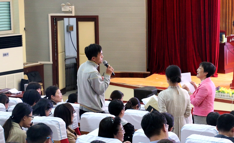 讲座伊始,李赛强教授设置了“课程思政是否只能在部分课程中实现”、“是否会影响教学任务的完成”、“是否应该由思想政治老师承担”三个问题,采取智慧教学“雨课堂”问答选择的形式导入讲座。之后,李教授从学会用OBE理念和CAI课程理论识别课程设计中教与学的一致性问题、理解“课程思政”在课程育人和教学质量提升中的意义和内涵、分享不同学科背景下“课程思政”教学设计案例、反思和判断“课程思政”是否在教学设计和实施的全要素和全过程中体现等四个方面进行了详细讲授。讲座中,李教授利用“课程思政”教学设计工作单形式,围绕如何在专业课教学中挖掘“课程思政”元素、如何确定教学目标、如何做好“课程思政”考核评价等与老师们互动交流。参会教师认真听讲、踊跃参与、积极互动,纷纷表示受益匪浅。