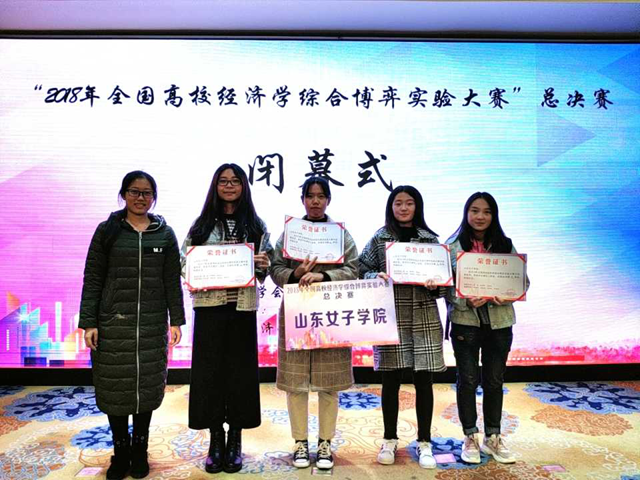 近日,2018年全国高校经济学综合博弈实验大赛总决赛在成都举行,我校经济学院李艳丽、姜凌洁、贾腾腾、薄永芳四名同学在比赛中获得全国团体三等奖、华东区二等奖的好成绩。