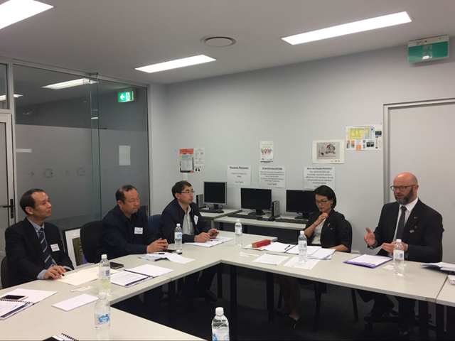 代表团访问纽卡斯尔大学(The University of Newcastle, Australia)时,该校商学院负责人(副校级)以及专业负责人和国际交流机构参加了座谈。双方围绕本科升硕士、专科升硕士问题展开了交流,同时对该校即将开展的工商管理博士(BDT)项目初步达成了一致意见。