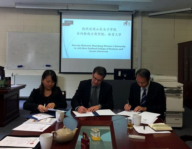 11月30日上午,在新西兰商学院(New Zealand College of Business),该校董事会成员同我校代表团举行了座谈会。双方围绕相关专业专升硕、本升硕项目进行了广泛探讨,交流了课程建设和专业合作问题。然后,代表团又同新西兰林肯大学(Lincoln University of New Zealand)重点就“金融学硕士+CFA”和“会计学硕士+CPA”项目进行了深入探讨,分析了项目建设的可行性和相关事项。最后,刘正林代表我校同新西兰商学院和林肯大学签订了三方合作备忘录。