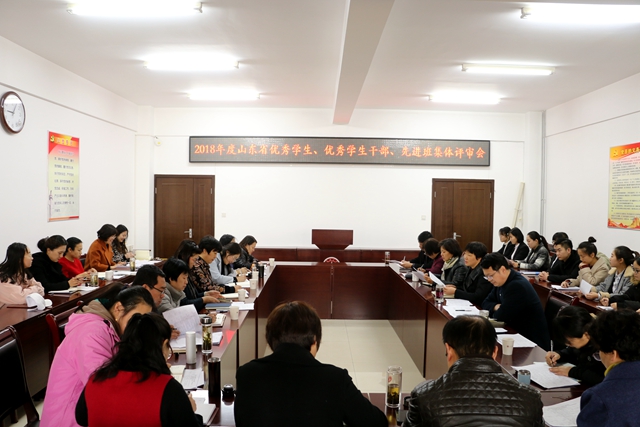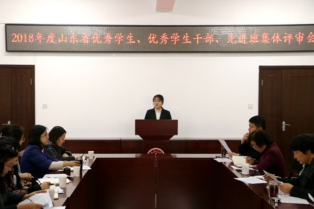 3月8日上午,学校在第四会议室举行2018年度山东高校优秀学生、优秀学生干部和先进班集体推荐评审会。副校长侯素美出席并主持会议,学生工作委员会委员参加评审会。